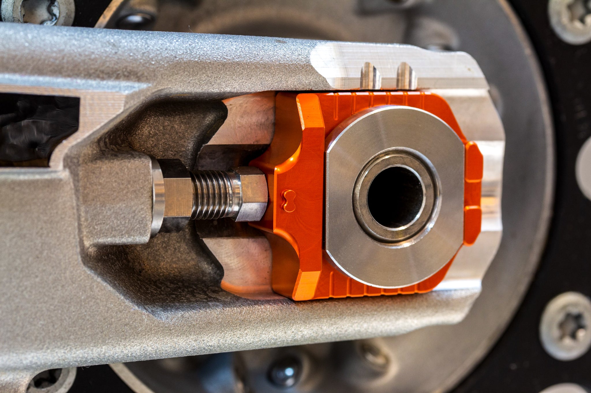 Consisting of a pair of CNC’d Elite axle blocks, a titanium drive-side receiver and a square removal tool nut, the Elite Axle Block Kit converts your stock Off-Road or Dual Sport model’s rear axle from a fixed design into a floating type. Factory teams use this same floating type design on their race team bikes to improve traction as well as straight line stability and now those same benefits are available from this kit. Another key component is the integrated receiver post on each axle block that allows the use of a caliper to precisely measure and match the left and right axle block’s position. This assures exact alignment of the chain and sprocket so critical to prolonging chain and sprocket life.
