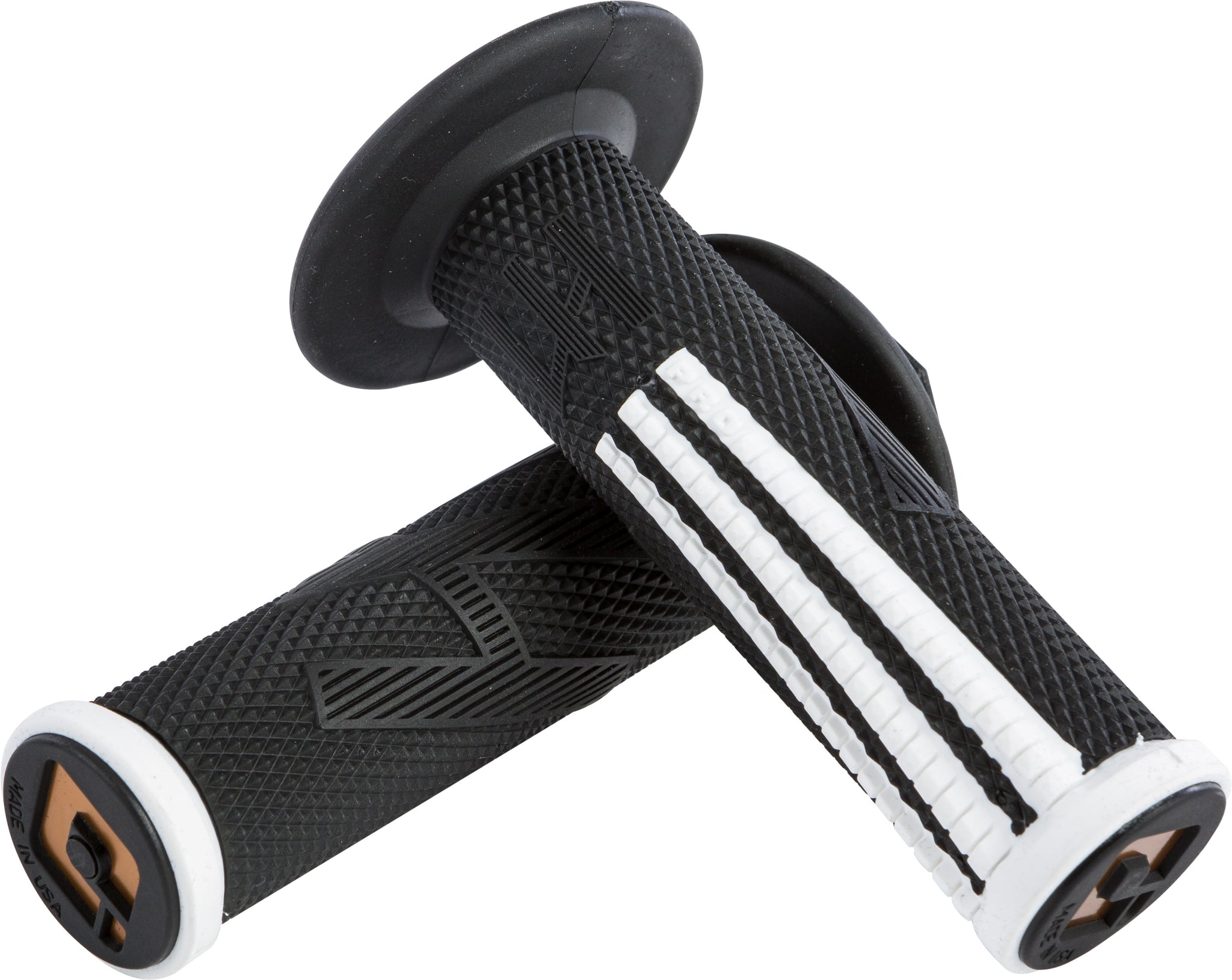 - Slim diameter profile with diamond knurled pattern improves traction and vibration dampening