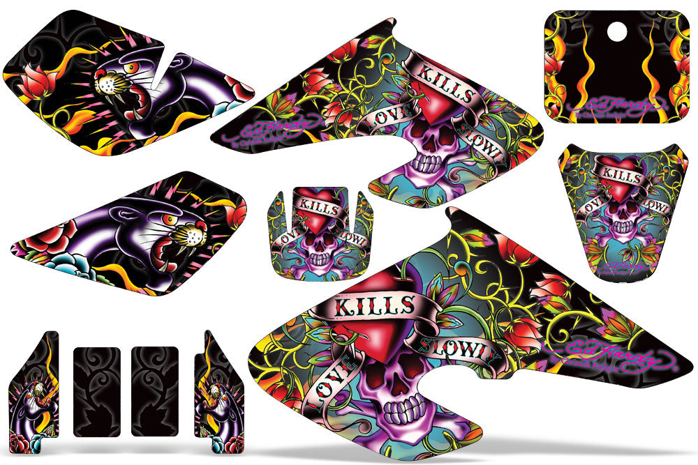 This Kit fits the Honda XR50. AMR Racing's Premium Graphics are produced to order and may take up to 5 business days to manufacture. All graphics are digitally printed with UV resistant inks that are guaranteed not to fade up to 5 years. These are not your typical 3-4 color Silk-Screened graphics. Our digital technology produces extremely Vivid and detailed images, up to 16.5 million colors! We use the thickest layer of scratch-proof clear vinyl over laminate for an Armor Like layer of protection. Our Genuine 3M brand adhesive assures your graphics won't be peeling off unless you want them to.