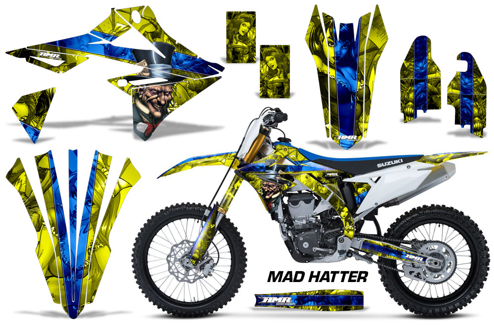 Dirt Bike Graphics Kit Decal Sticker Wrap For Suzuki RMZ450 2018+ HATTER BLUE YELLOW
