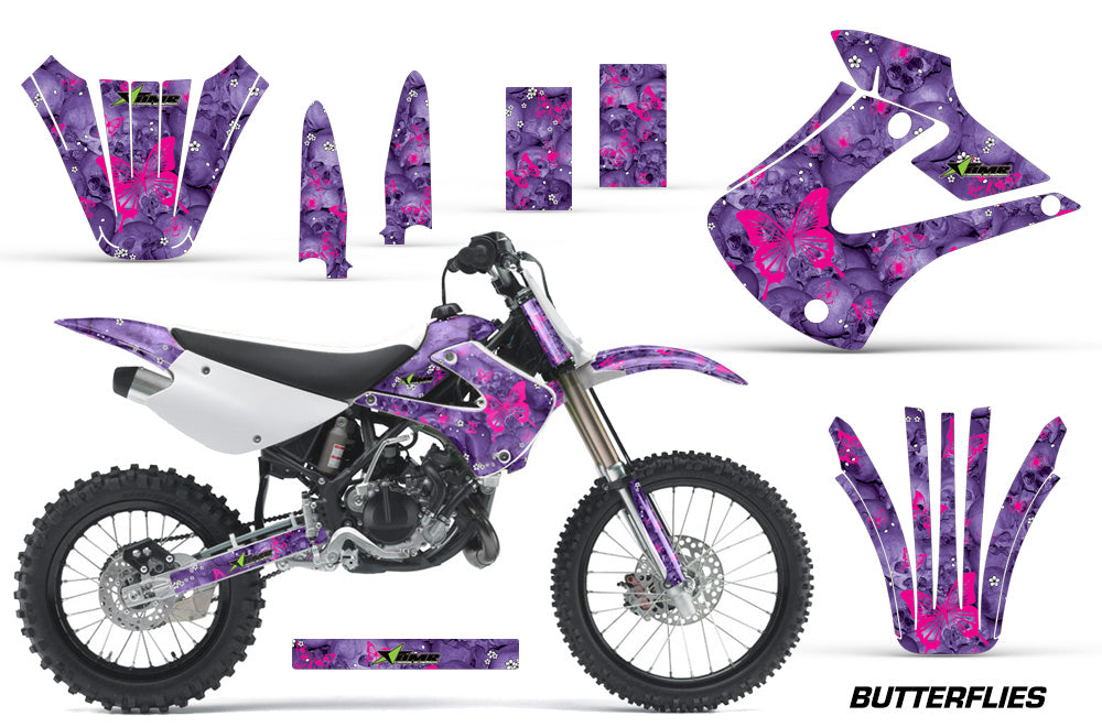 Dirt Bike Graphics Kit Decal Wrap For Kawasaki KX85 KX100 2001-2013 BUTTERFLIES PINK PURPLE