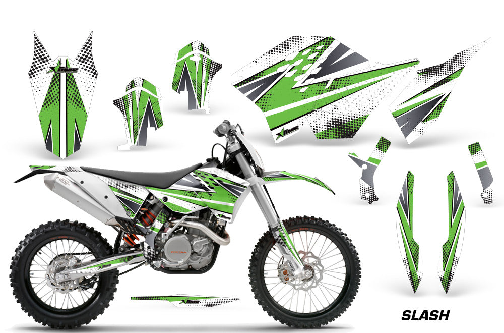 Dirt Bike Graphics Kit Decal Wrap For KTM SX/XCR-W/EXC/XC/XC-W/XCF-W 2007-2011 SLASH GREEN WHITE