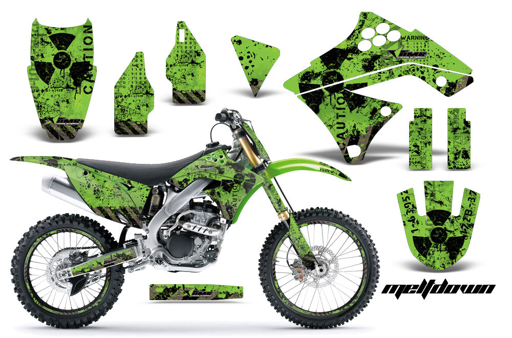 Graphics Kit Decal Sticker Wrap + # Plates For Kawasaki KX250F 2009-2012 MELTDOWN BLACK GREEN