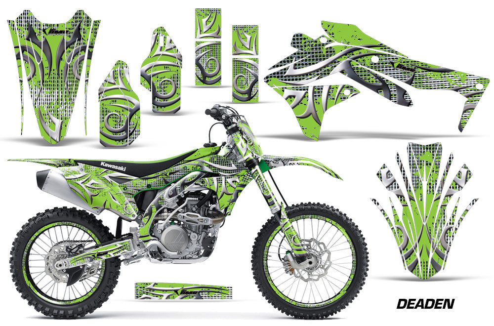 Graphics Kit Decal Sticker Wrap + # Plates For Kawasaki KXF450 2016-2018 DEADEN GREEN